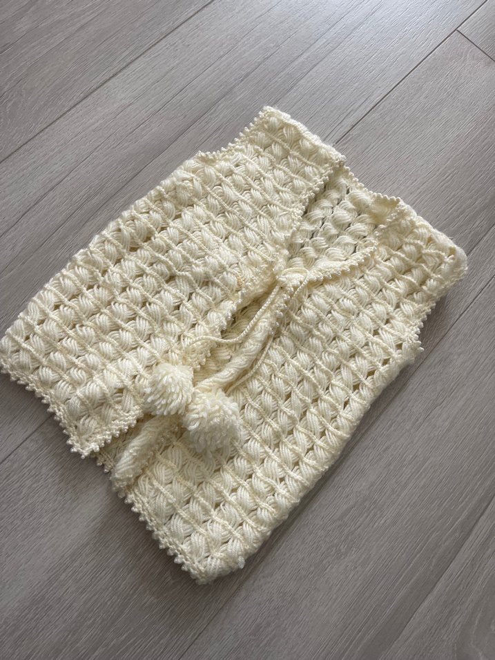 El örgüsü ponponlu kız yeleği. Bir defa kullanıldı. Minik ellere faydalı olması için uygun fiyata satıyorum. ✨☺️