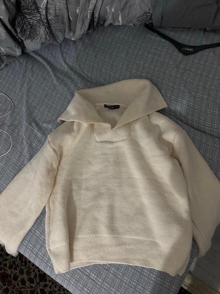 Beyaz yaka detaylı örgü yün kazak, uzun kollu ve bol kesimdir. Günlük rahat ve trend görünüme uygundur. Orijinal mango hiç giyilmedi sıfır