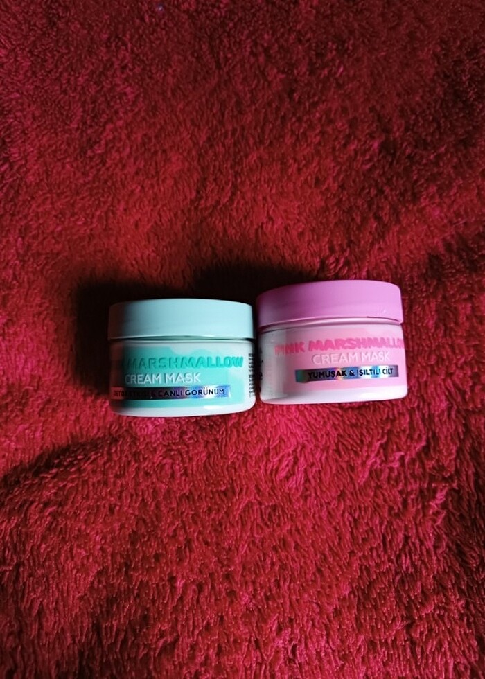 Krem Maske, yeşili 2 kere kullanılmıştır ve pembesi 1 kere kullanılmıştır. Kokuları çok güzel, yeşilin fresh ve pembenin tatlı bir kokusu var. İkisinin toplam fiyatıdır.