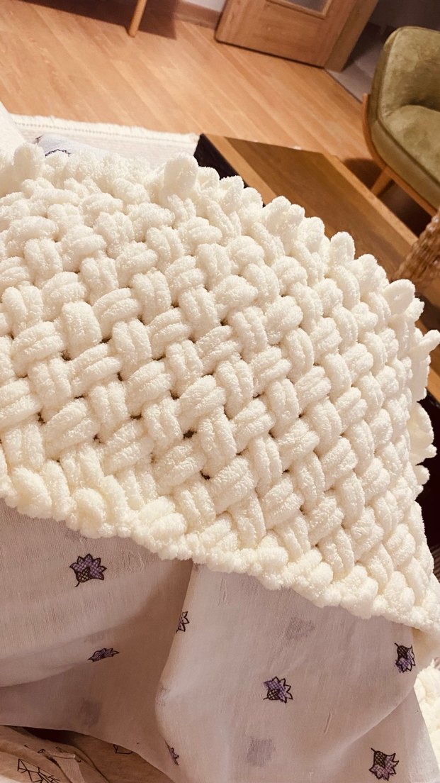 El emeği Krem renkte, yumuşak dokulu, desensiz örgü çocuk battaniyesidir. 80/80 ölçüde istenilen desende örme şansı vardır .