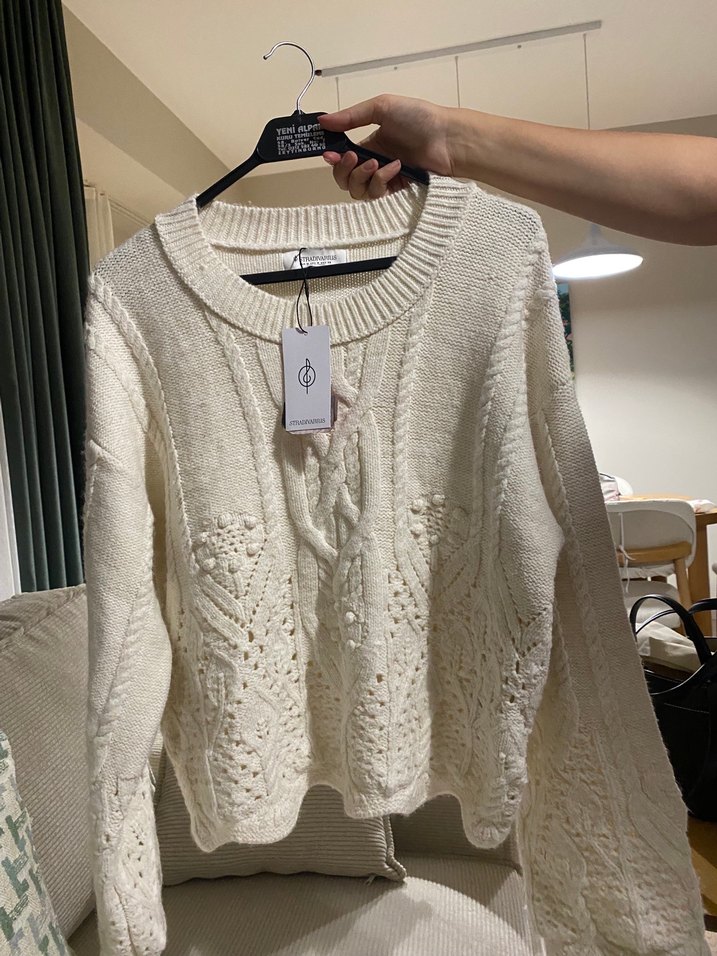 bol kesim bohem tarzda örme kazak. Stradivarius M beden etiketli. Hediyeydi bedeni büyük geldiği için satıyorum