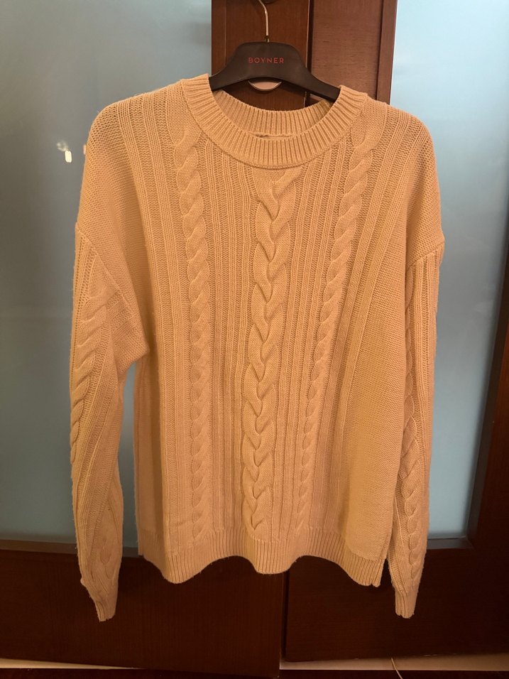 Bej renkli, örgü dokulu, yuvarlak yaka ve uzun kollu kadın triko kazak. Rahat kesimi ve normal boyu ile günlük kullanıma uygundur. Hafif tüylenmesi var krem rengi