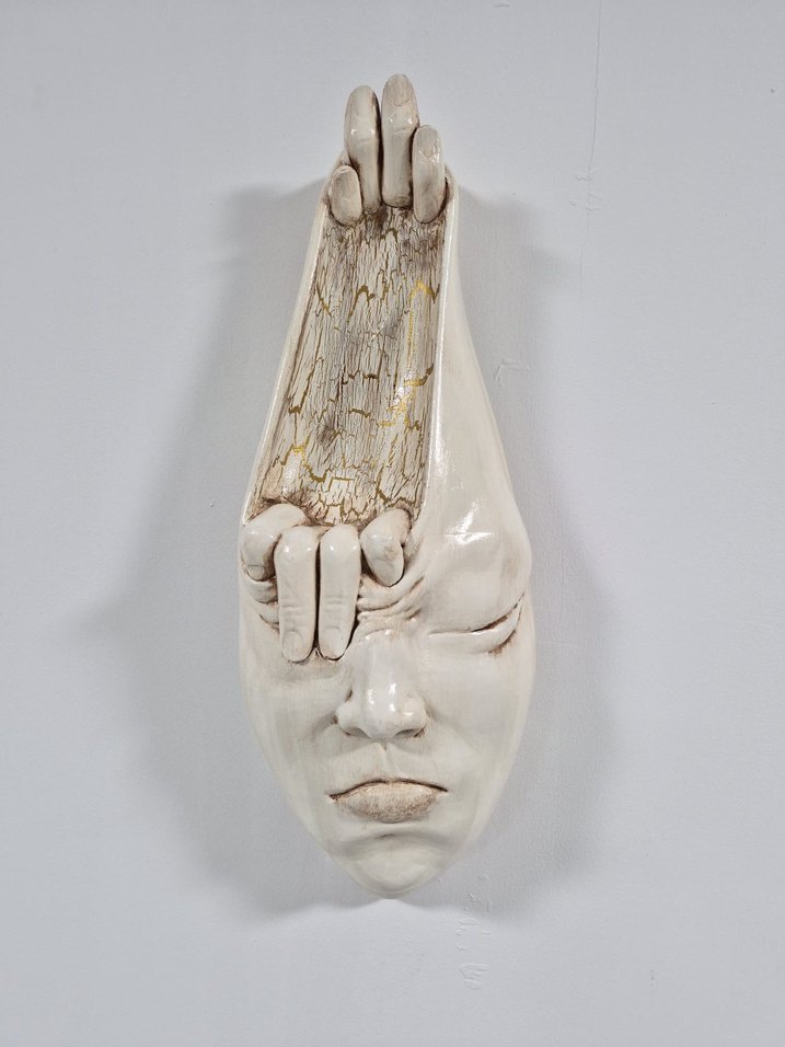 Krem ve eskitme tonlarında çatlak dokulu, Krem rengi eskitmeli yüz figürü. ️Ölçü En : 21 cm Boy : 52 cm