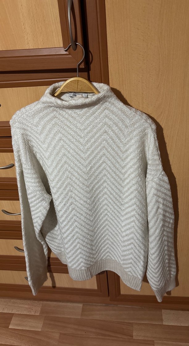 Krem rengi Boğazlı Örgü Kadın Kazak