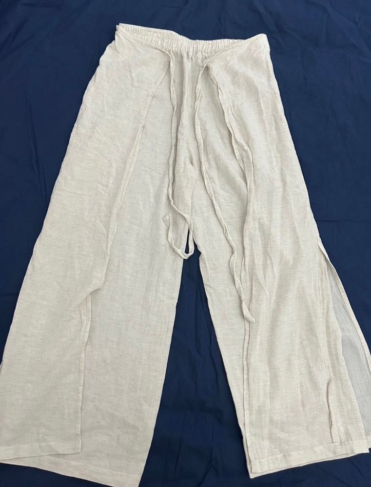 krem rengi bohem bol keten pantolon