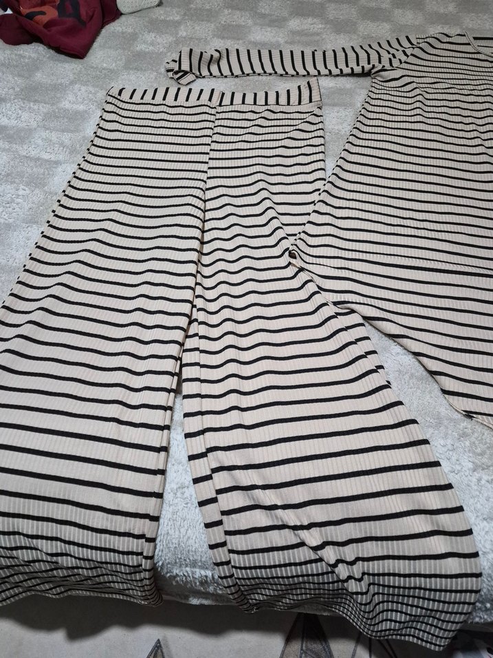 , yumuşak sentetik kumaştan yapılmış, rahat ve trend sokak stili için uygun, uzun kadın pantolon tünik