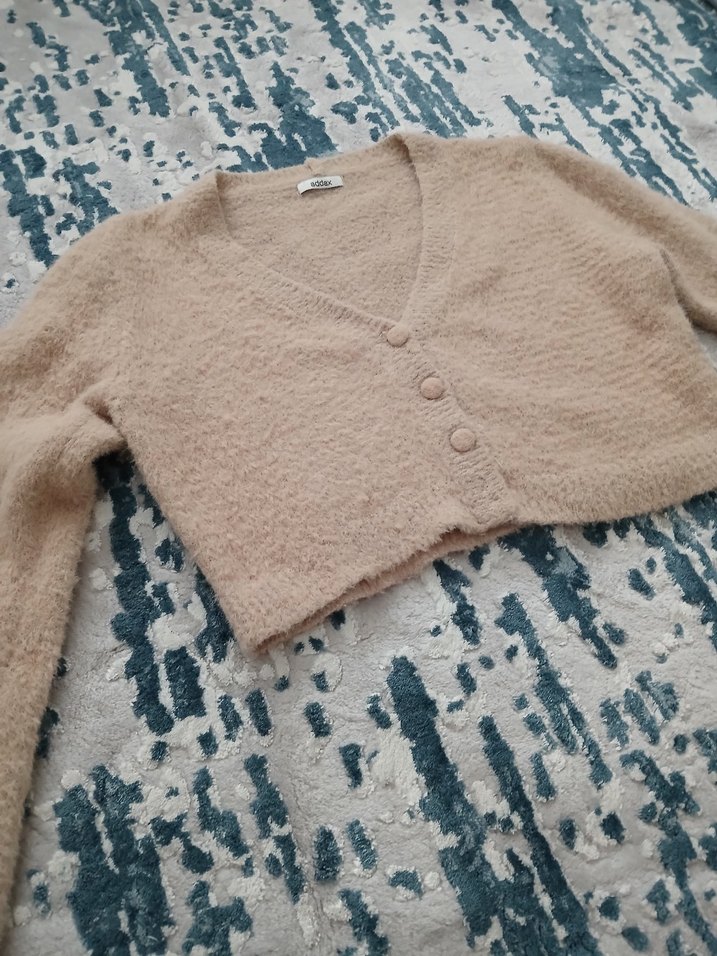 krem rengi crop orme yumusak ceket