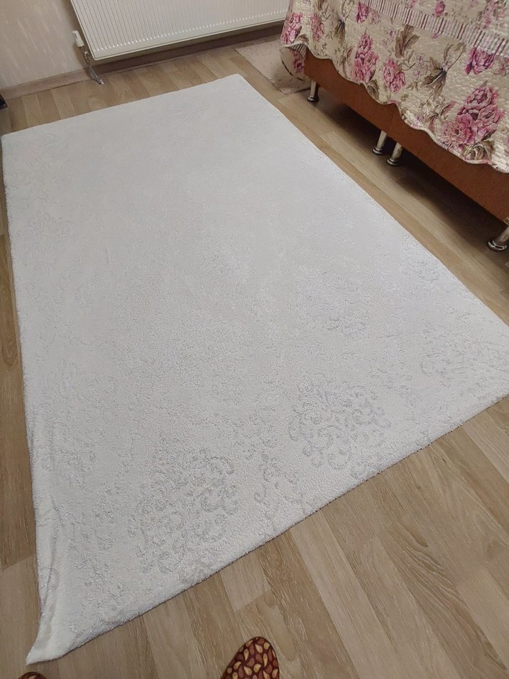 Krem tonlarda hafif desenleri olan düz ve klasik tarzda halı. Temiz ve sade bir görünüm sunar. Az kullanılmış sıkıntısız deformesiz temiz ürün. 4 metrekarelik halılar için uyumludur.