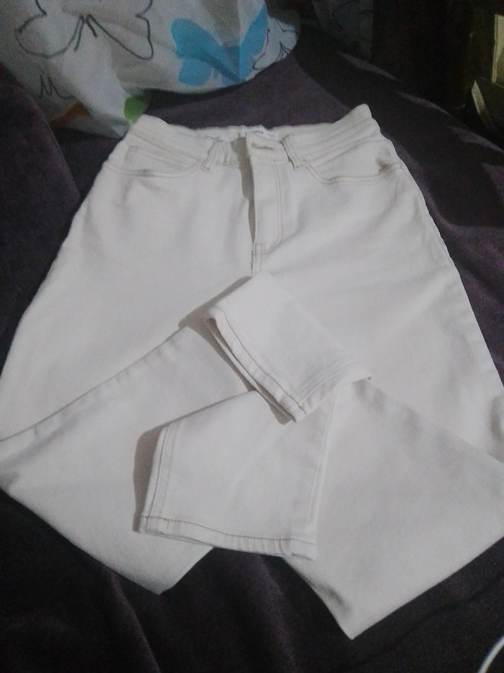 Krem rengi pamuklu kumaştan, rahat kesim ve normal boyda, gündelik sokak stiline uygun kadın pantolon. Günlük kullanım için konforlu.