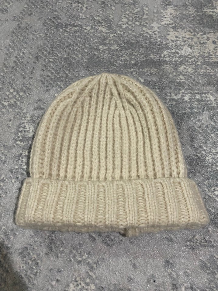 Yumuşak yünden yapılmış, kürk detaylı krem rengi kadın bere. Rahat ve basic katlanabilir manşetli tasarıma sahiptir.