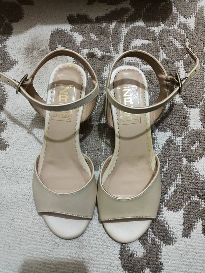 Krem rengi kısa topuklu sandalet