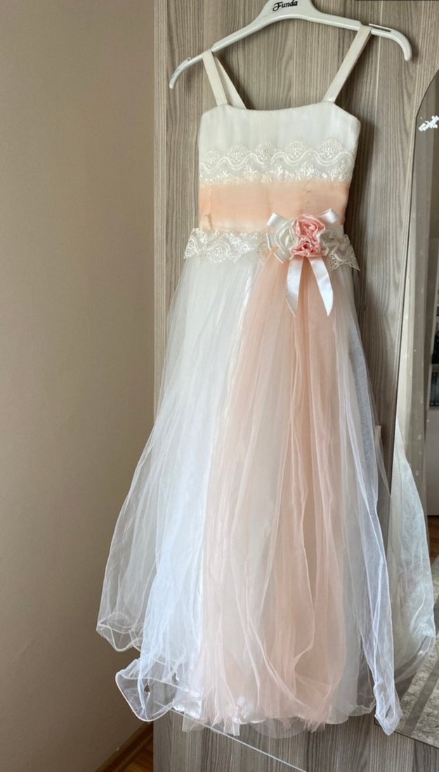 Krem Rengi Klasik Kız Çocuk Abiye Elbise