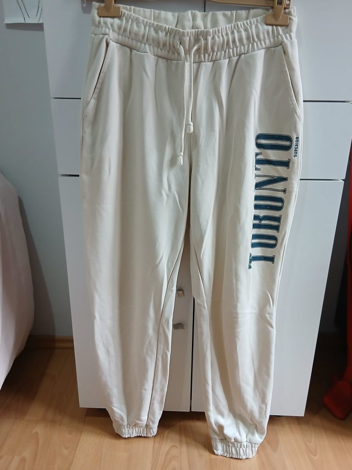 krem rengi pamuklu kumaştan rahat kesim ve bağcıklı bel lastiğine sahip, 'TORONTO' baskılı spor tarz eşofman. Günlük kullanıma uygun rahat ve şık. ️