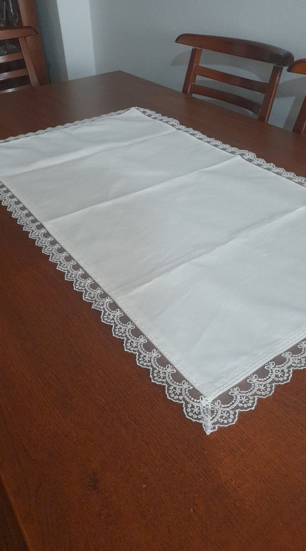 krem rengi fisto dantelli canvas kumaştan eni 51 cm uzunluk 89 cm masa veya sehpa örtüsü
