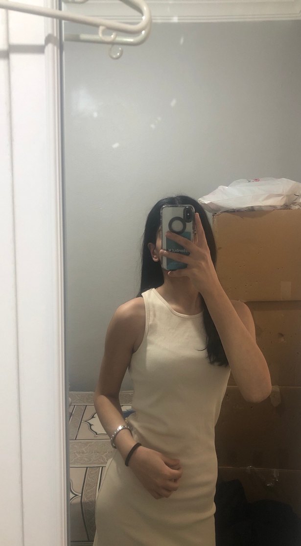 Krem rengi s beden tam kalıp mini elbise