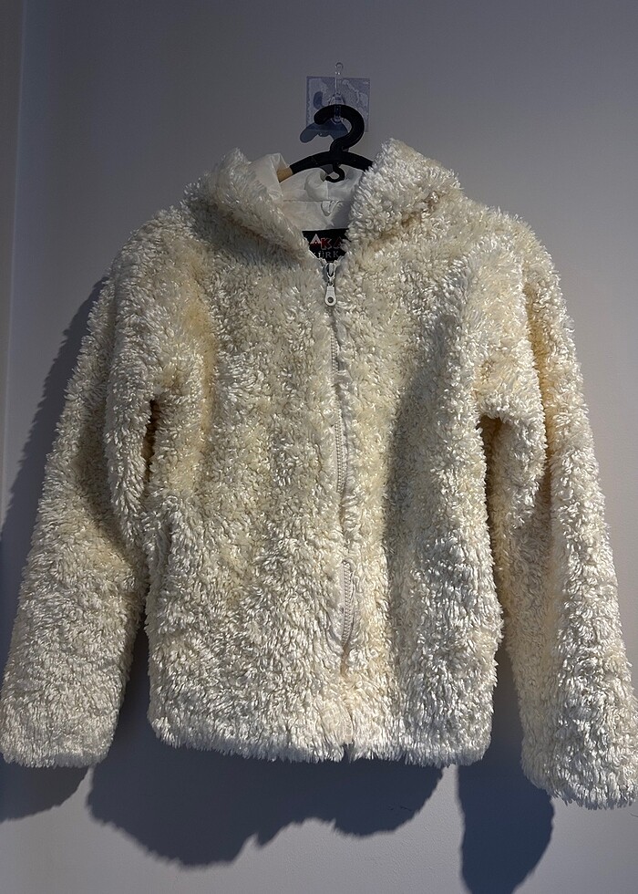 kapüşonlu,fermuarlı, içi astarlı, sıcacık tutan bir kürk, küçük geldiği için satıyorum. bir sorunu yok