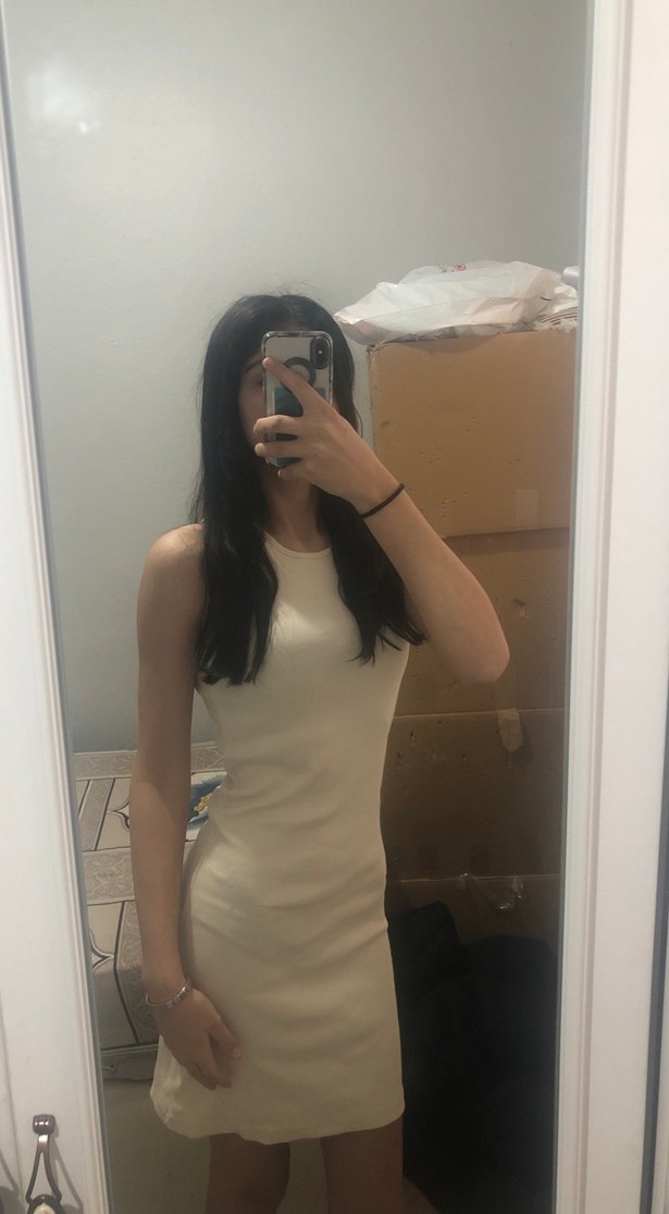 Saten kumaştan, düz yakalı ve kolsuz beyaz midi kalem elbise. Minimalist ve cesur tarzıyla günlük kullanıma uygundur. ✨