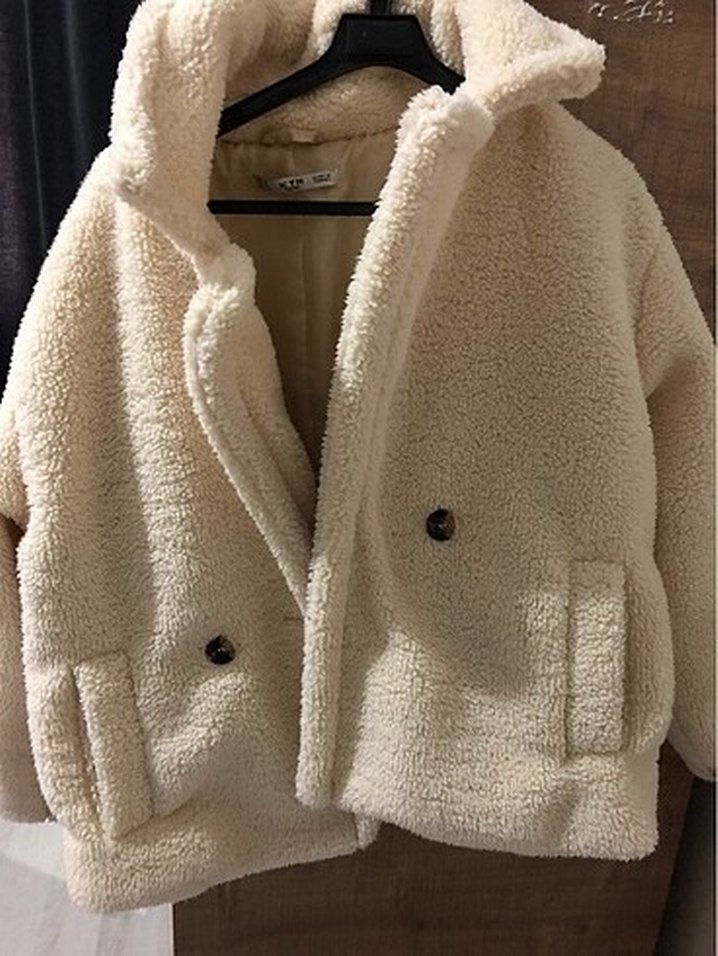 Krem rengi, teddy kumaşlı kısa kaban. düğme detaylı. 2-3 kez giyilmiştir #mont #kaban #teddy #ceket