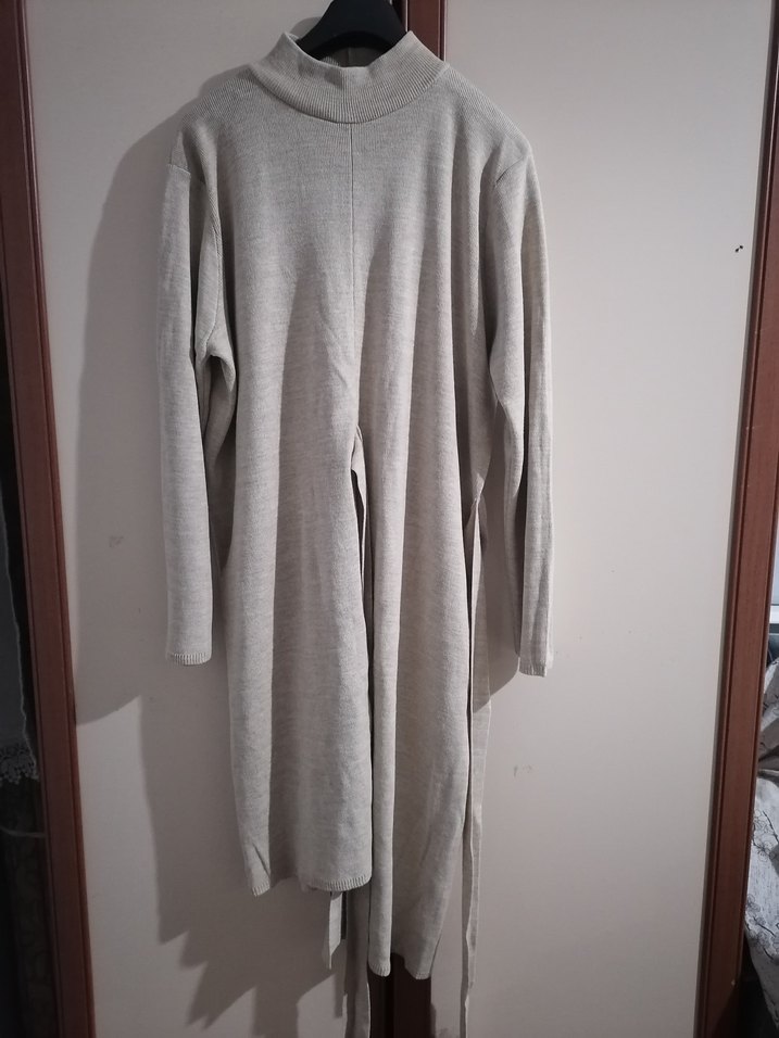 Krem rengi uzun kollu, yüksek yakalı ve salaş kesim triko. Yumuşak kumaştan üretilmiş, dökümlü tasarımıyla rahat ve şık bir görünüm sunar. boy uzun taraf 105 cm kısa taraf 95 cm göğüs 60 kol boyu 58 cm dir modeli göründüğü gibi bağlanmalıdır