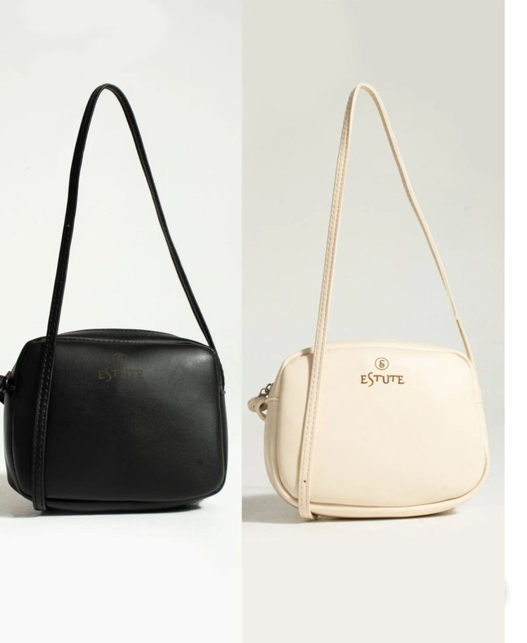 krem rengi ve siyah renkn,minimal ve modern klasik tasarımlı kadın çanta. ESTUTE logosu ile sade şıklık sunar, günlük kullanım için idealdir.