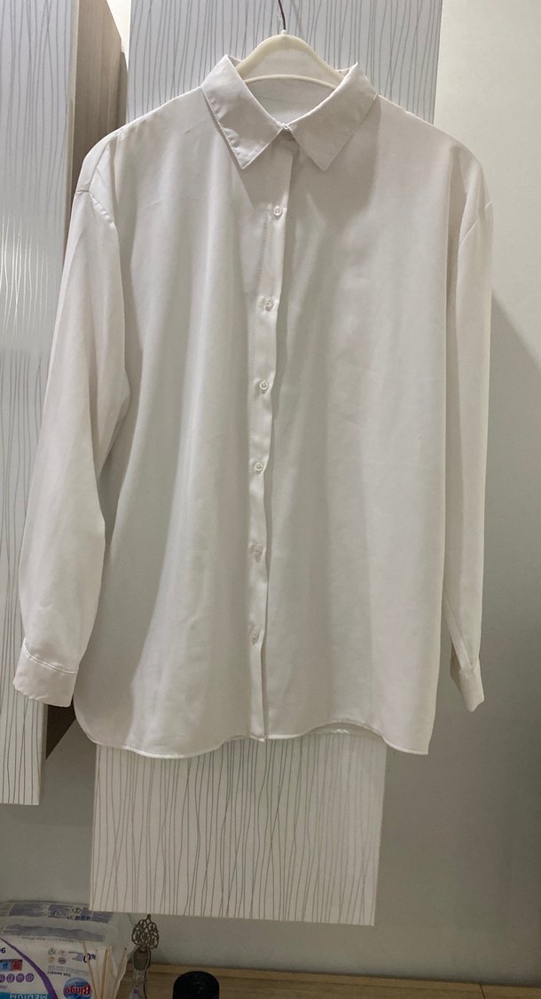 Uzun kollu krep kumaş krem rengi kadın gömlek