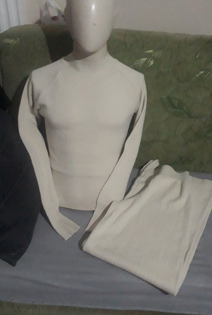 krem uzun kollu, desensiz ve yumuşak dokulu kazak pantalon