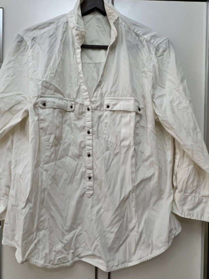 Krem rengine dönük Düğmeli Beyaz Keten Kadın Gömlek