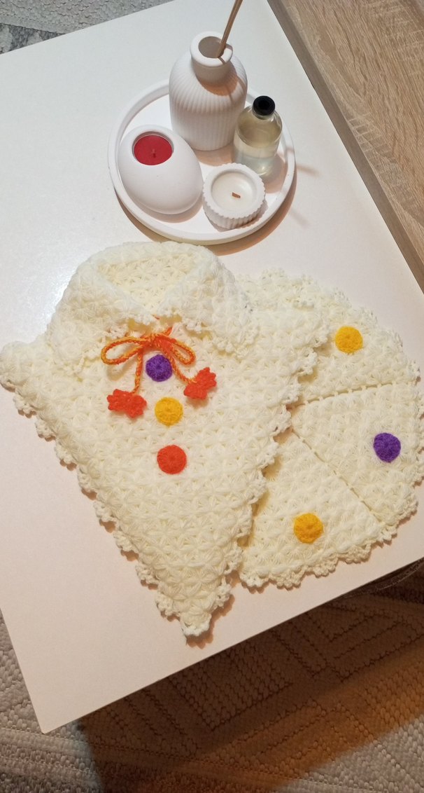 Renkli nakışlı noktalarla süslenmiş yumuşak beyaz bebek önlükleri, sevimli ve rahat bir görünüm sunar.