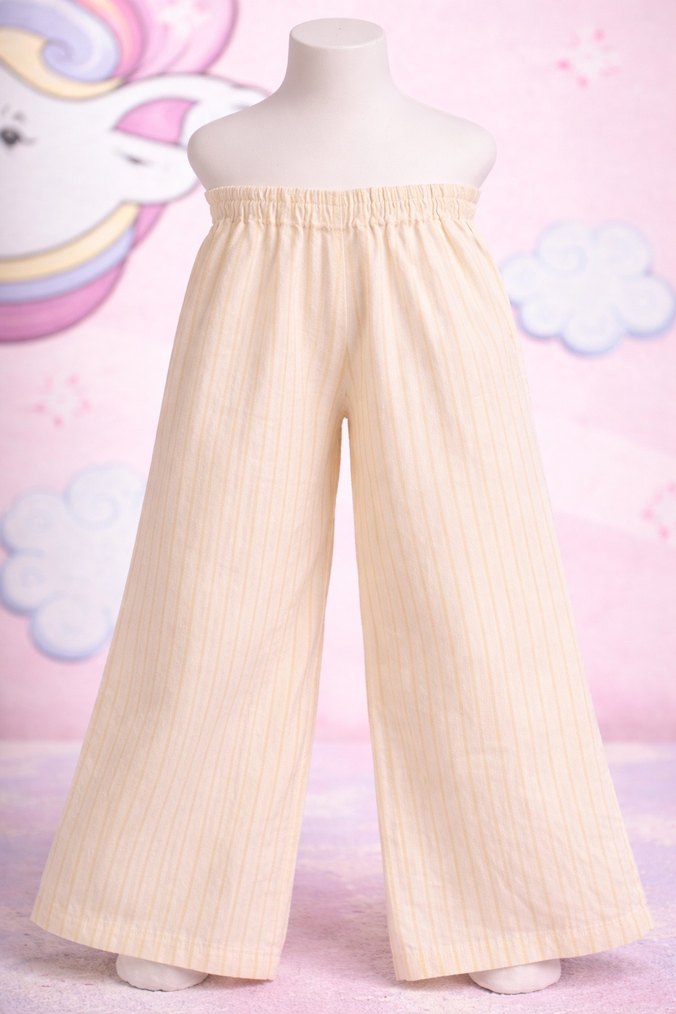 Krem renkli pamuklu kız pantolonu, bol kesim ve pileli tasarımıyla rahat ve günlük kullanım için uygundur.