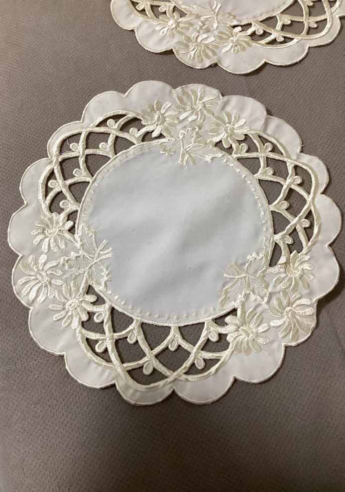 Krem renkli, nakışlı çiçek desenleri ve oyma detayları bulunan yuvarlak çap 26 cm