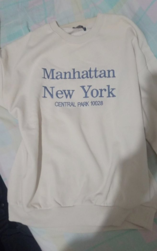 Krem Renk Pamuklu Manhattan Baskılı Sweatshirt