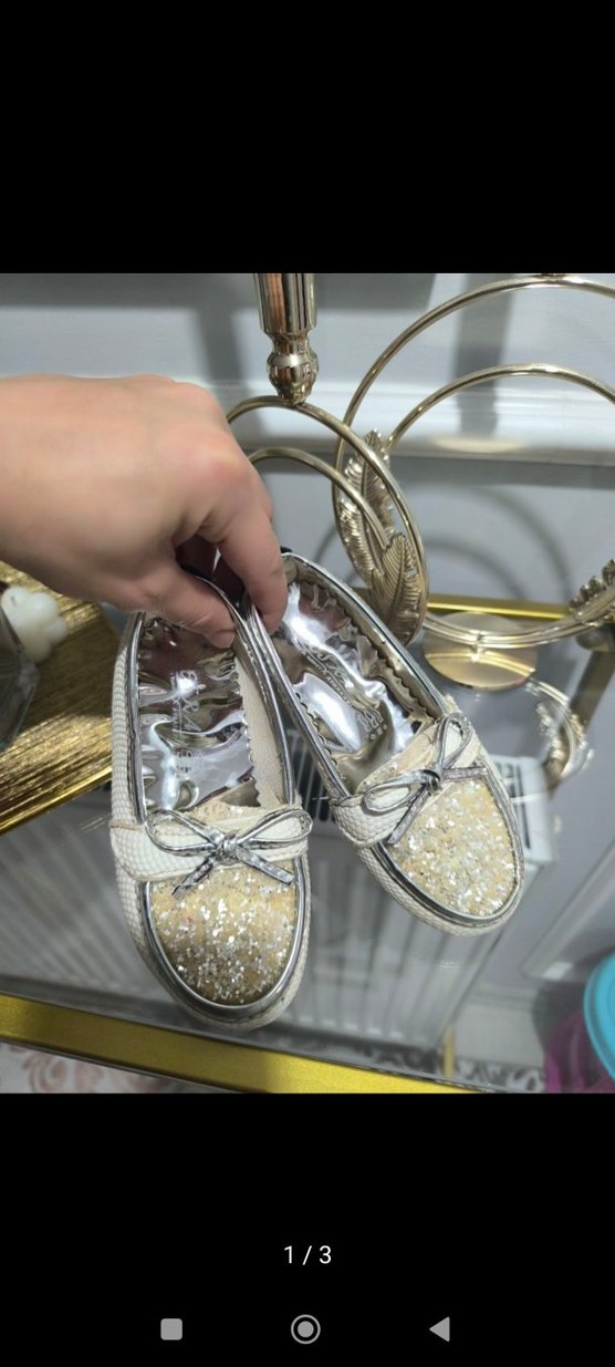 krem renkli önünde fiyonk detaylı, çocuk babet.