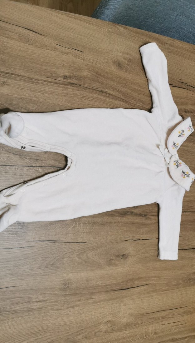 Uzun kollu, yakalı ve düğmeli pamuklu bebek tulumu, pastel beyaz renkte konforlu ve sade bir tarz sunar.