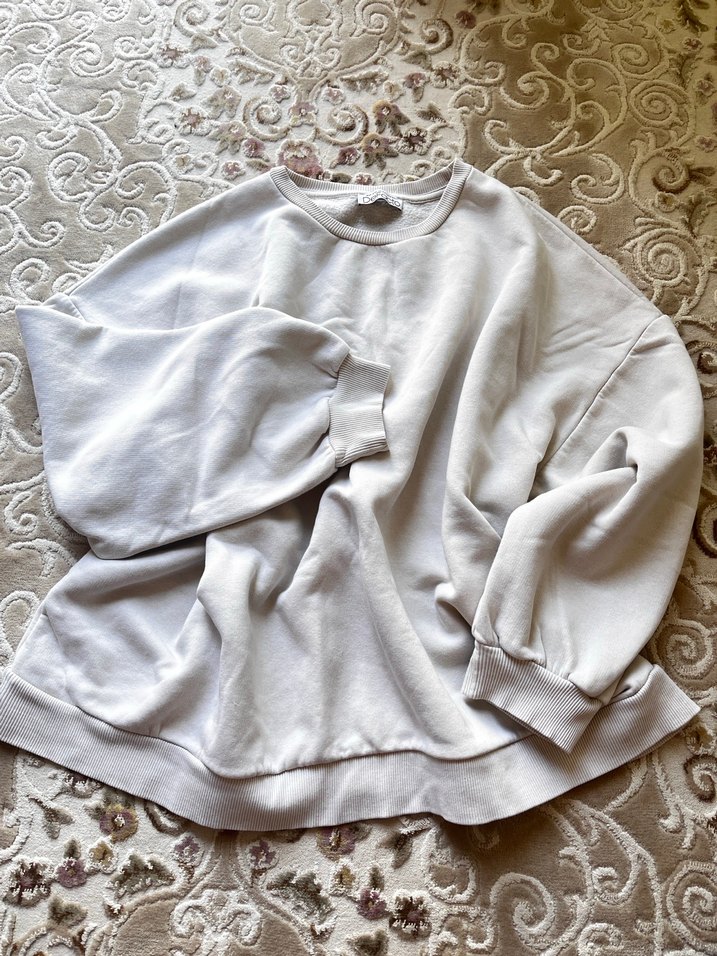 AçıkKrem renkte , yuvarlak yakalı, uzun kollu ve bol kesim normal boyda sweatshirt. Günlük kullanım için uygun. fazla kullanmadıgım icin satiyorum.