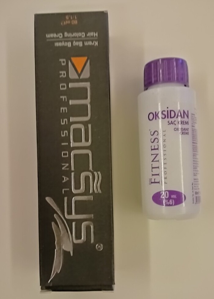 Macsys marka 6.34 numara koyu karamel krem saç boyası. Yeni ve oksidanı ile birlikte.