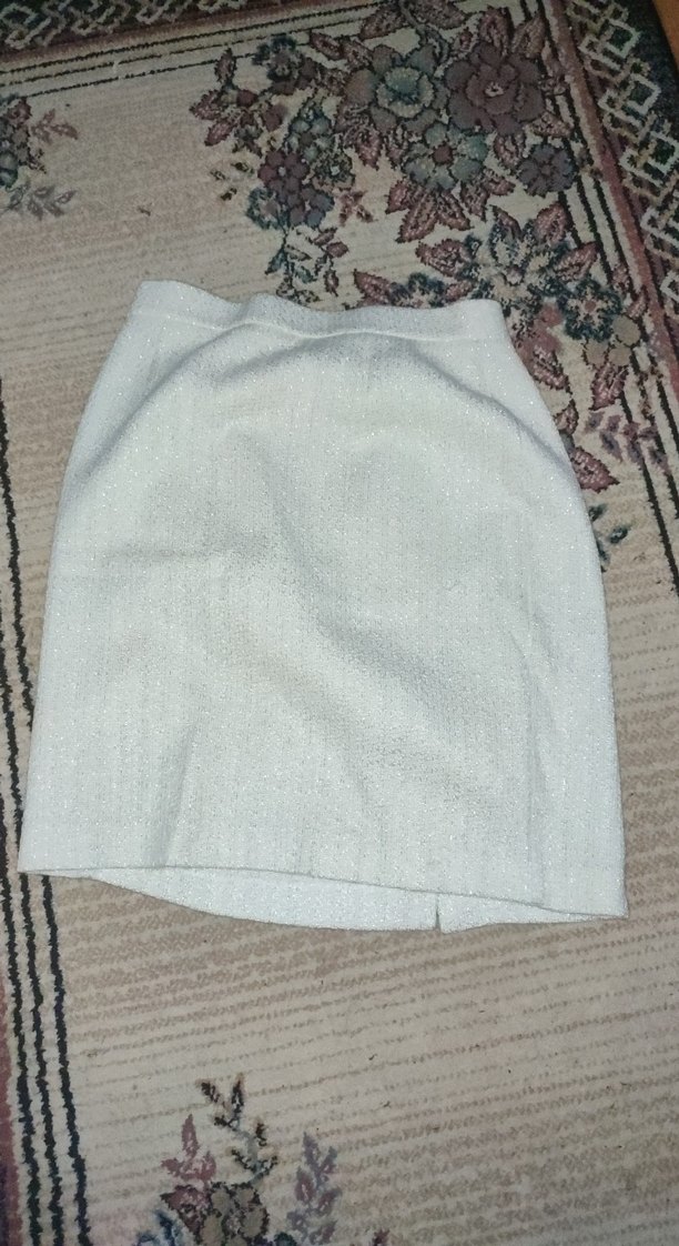krem simli etek gösterdiğim yerde küçük bir defosu var dikilmesi lazım. 38 beden midi boyda örme etek iç astarlı Paul mark Bel 38 cm boy 54