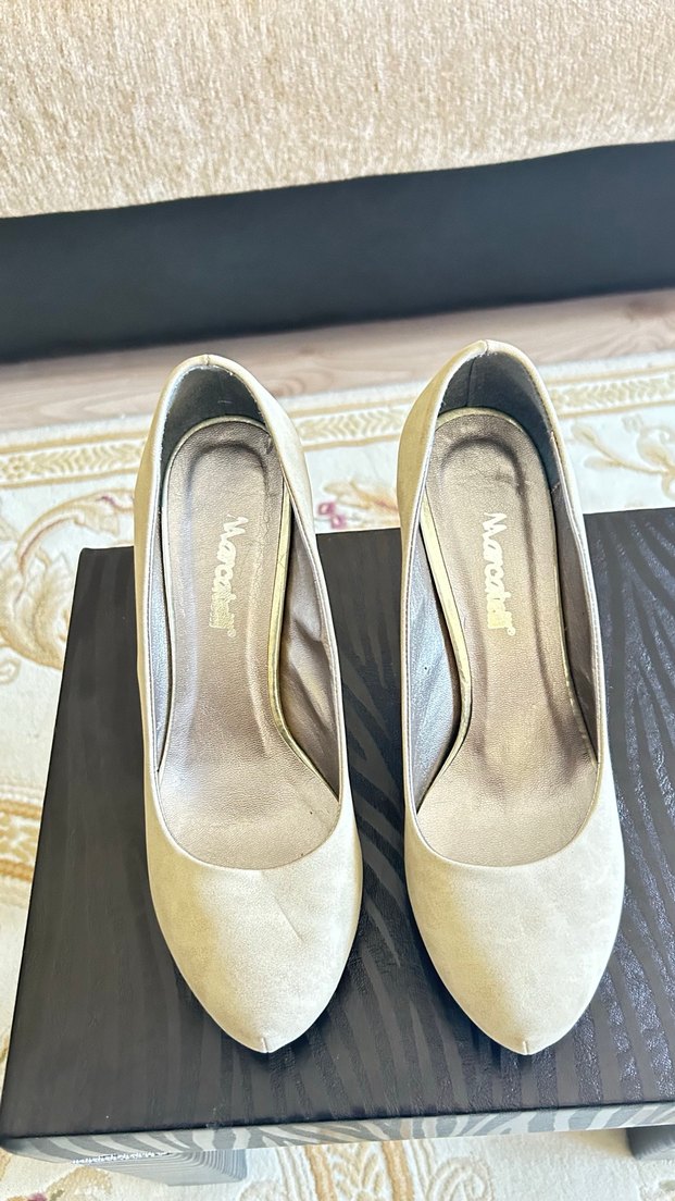 Krem stiletto topuklu kadın ayakkabı, minimalist ve normcore tarzda, klasik ve zarif görünüm için kauçuk malzemeden, düğünler için uygun. Zahmetsiz şıklık sunar. Evde bir kez giyildi dolap bekledi çn tarafında hafif çizgi gibi bir detay var hiyime engel değil topuk boyu 10 cm