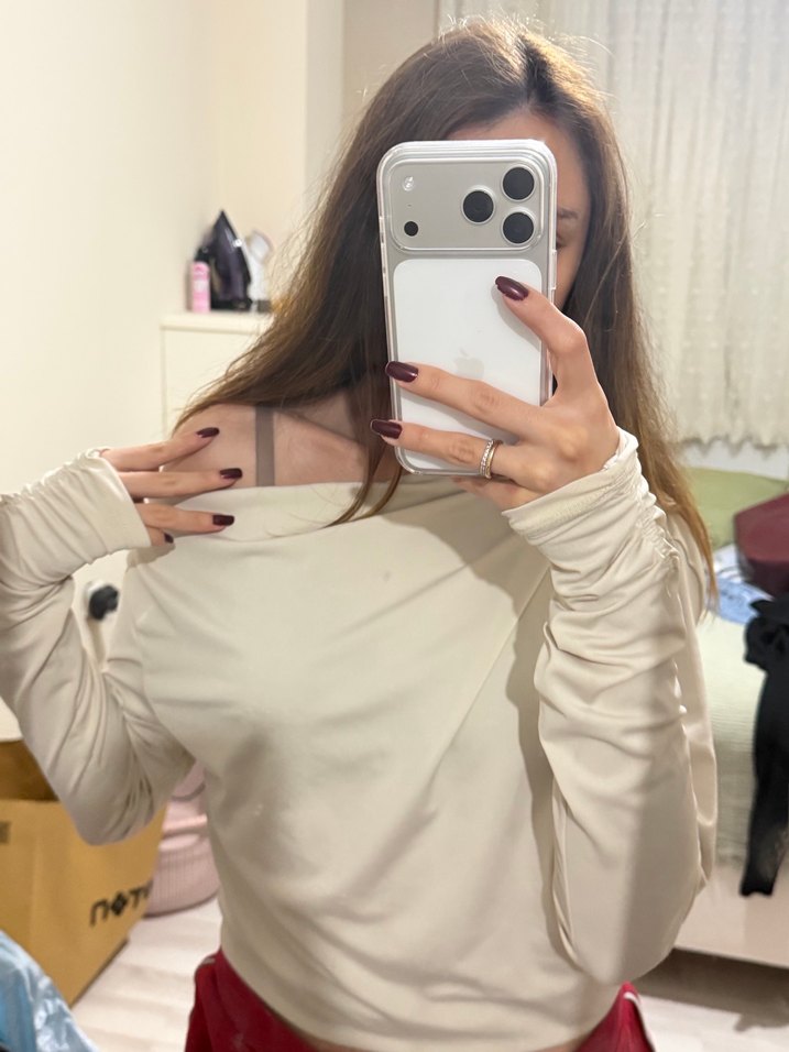 Krem Straplez Uzun Kollu Kadın Bluz
