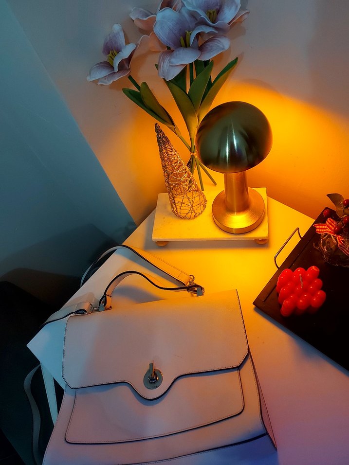 krem renkli deri çanta, tokalı kapama ve baskılı desenle minimalist ve çağdaş tarzı birleştirir. Günlük kullanım için uygundur. ✨