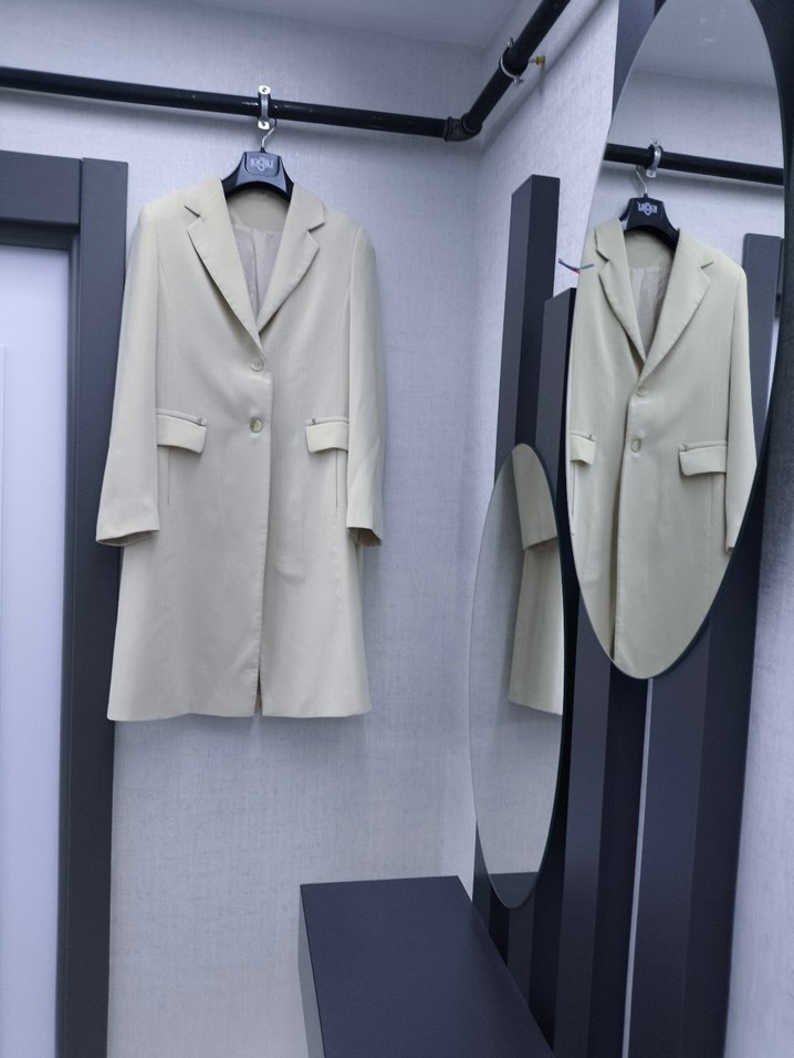 44 beden krem rengi uzun ceket.Detayları sorabilirsiniz.