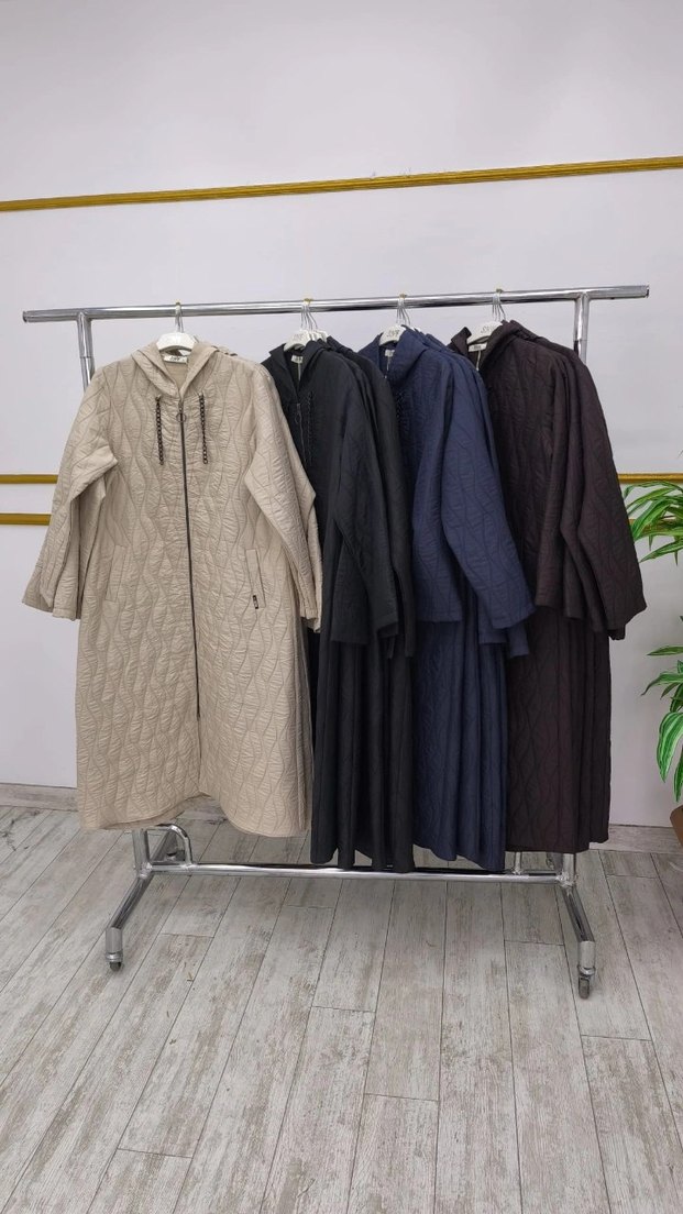 krem renkli, uzun kollu, kapitone kumaştan yapılmış kadın kap. Regular fit kesimi ve yuvarlak yaka detayıyla günlük rahat ve sade bir tarz sunar.