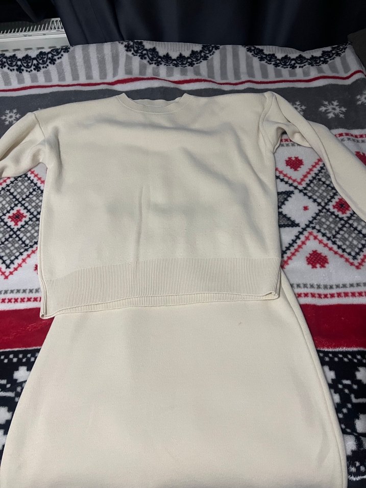 L-Xl beden ama dar kalıplı Krem rengi Etekli takım