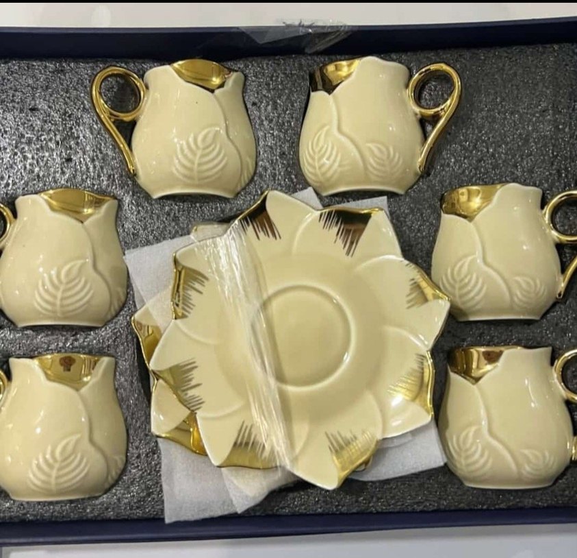 Krem ve Altın Detaylı Porselen Kahve Fincan Takımı