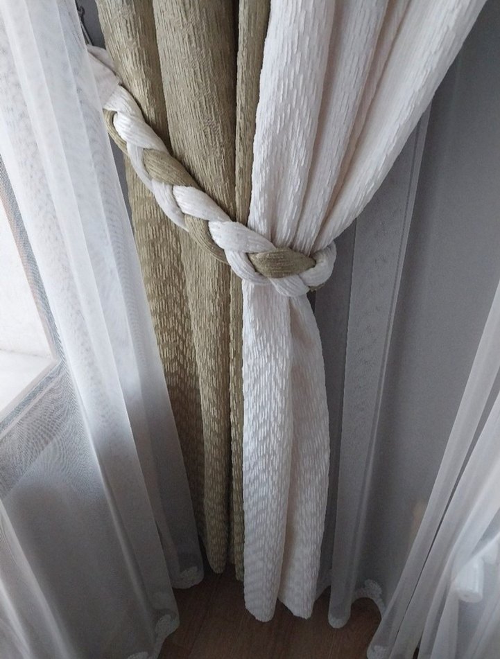 Krem &Haki Yeşil Çift Renkli Klasik Fon Perde 2 Kanat 2 Kemer