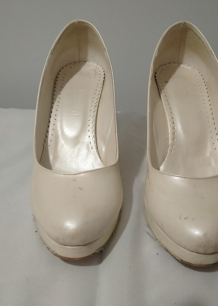Krem yüksek topuklu abiye ayakkabısı