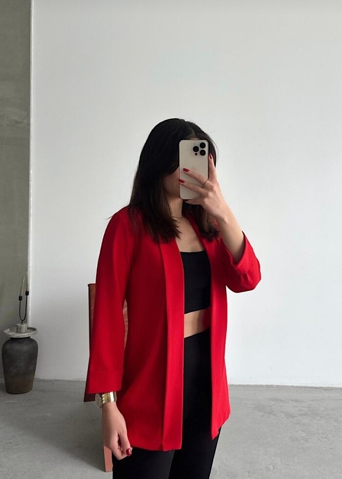 Ürünümüz resimdekinin aynısı krep kumaş ceket tam kalıptır astarsız dır Siyahta 38 40 beyazda ( 38 44 beden) kırmızıda 42 bedenleri mevcuttur sipariş verirken ona göre beden belirtiniz.