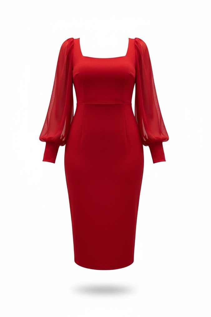 Krep Kumaş Kare Yaka Mini Elbise