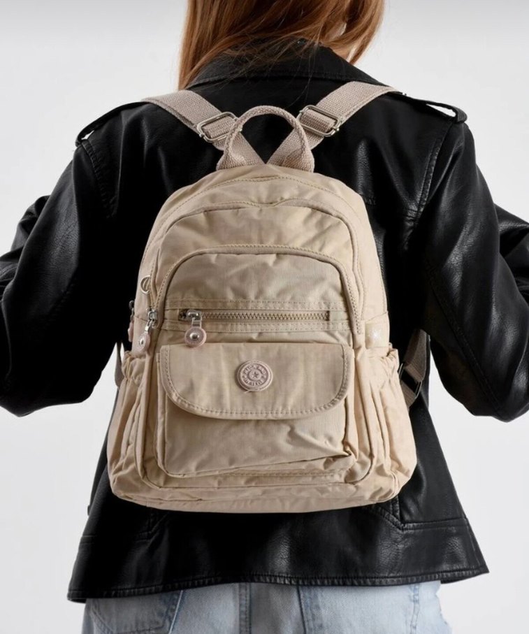 Kadınlar ve erkekler için su geçirmez özellikli krinkıl kumaş fermuarlı, sırt çantası. Sentetik kumaştan, günlük sokak modasına uygun rahat ve şık.çok bölmeli