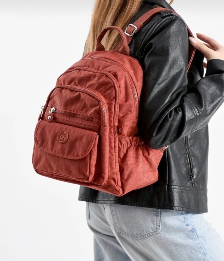 Kadınlar ve erkekler için su geçirmez özellikli krinkıl kumaş fermuarlı, sırt çantası. Sentetik kumaştan, günlük sokak modasına uygun rahat ve şık.çok bölmeli