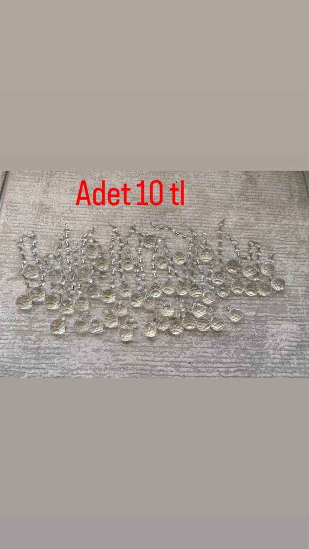 kristal avize aksesuarları, boncuklu ve her biri 10 TL'den satılmaktadır. Lamba dekorasyonu için uygundur.